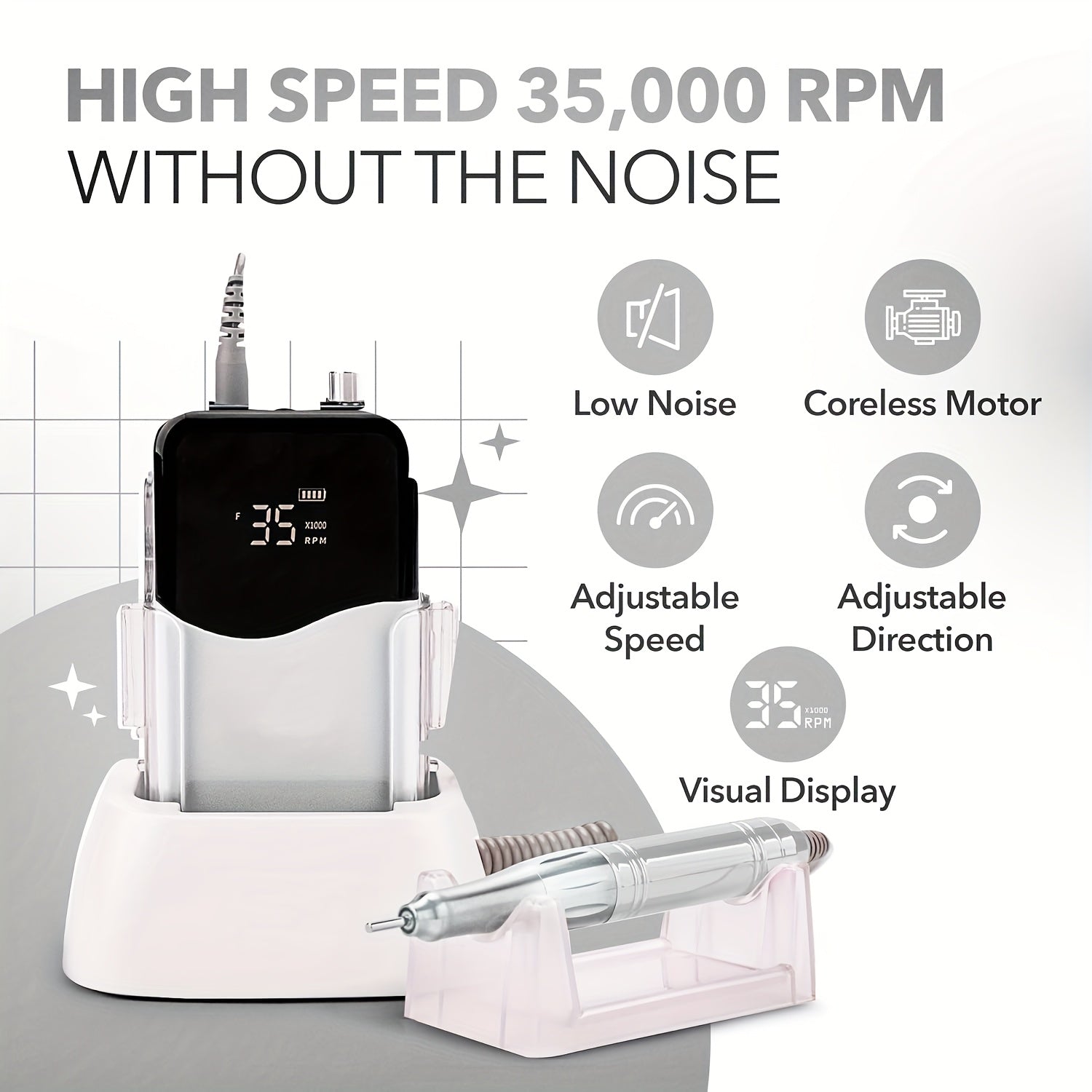 35000 RPM Rechargeable Nail Drill Machine with HD Display Cordless Electric Nail Drill for Salon and Home Use in Unicorn Purple Silvery White Black Golden Blue