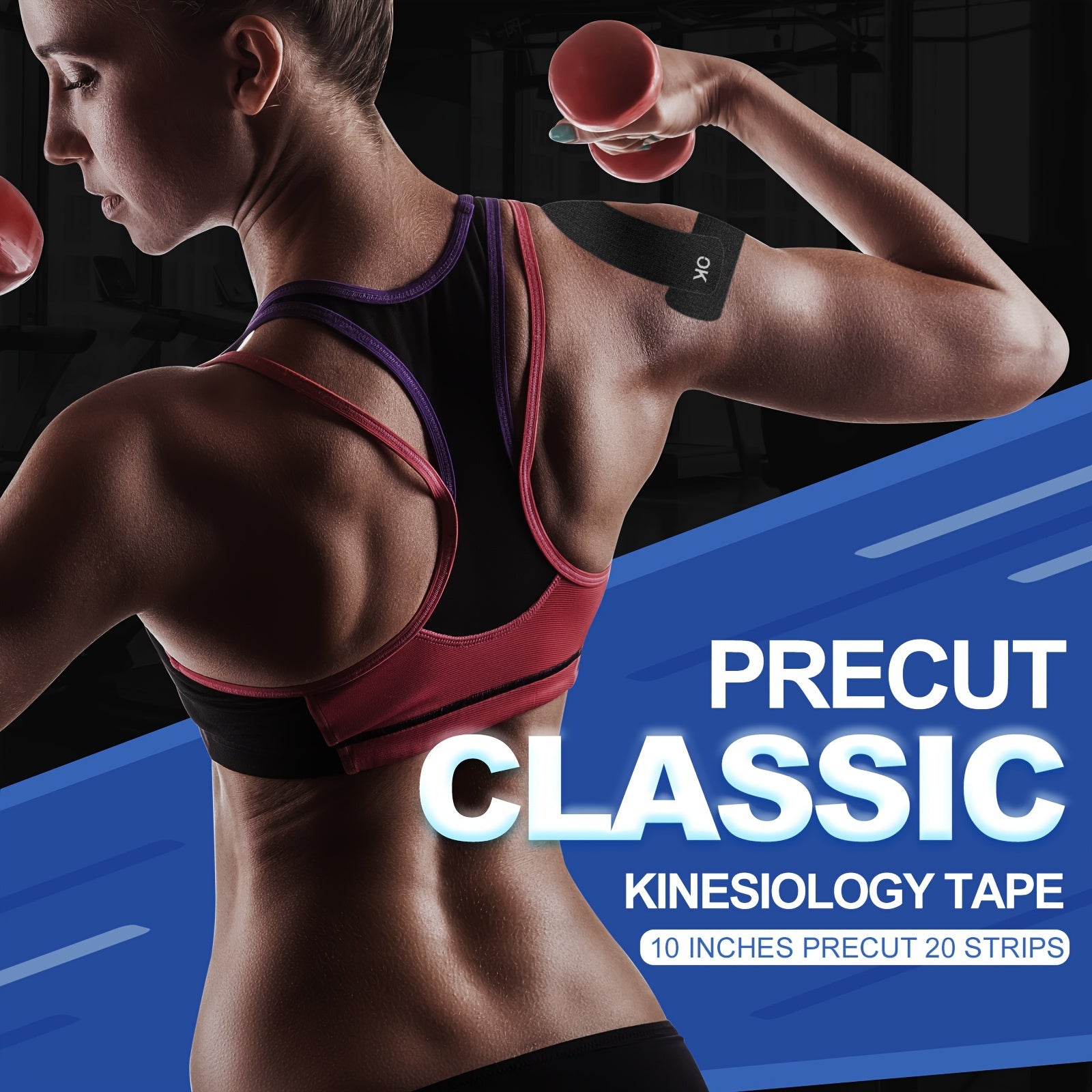 4 Rolls OK Tape Kinesiology Tape 10 Inches Precut 20 Strips Cotton Elastic Athletic Tape Latex Free 2 Inch X 16 Ft