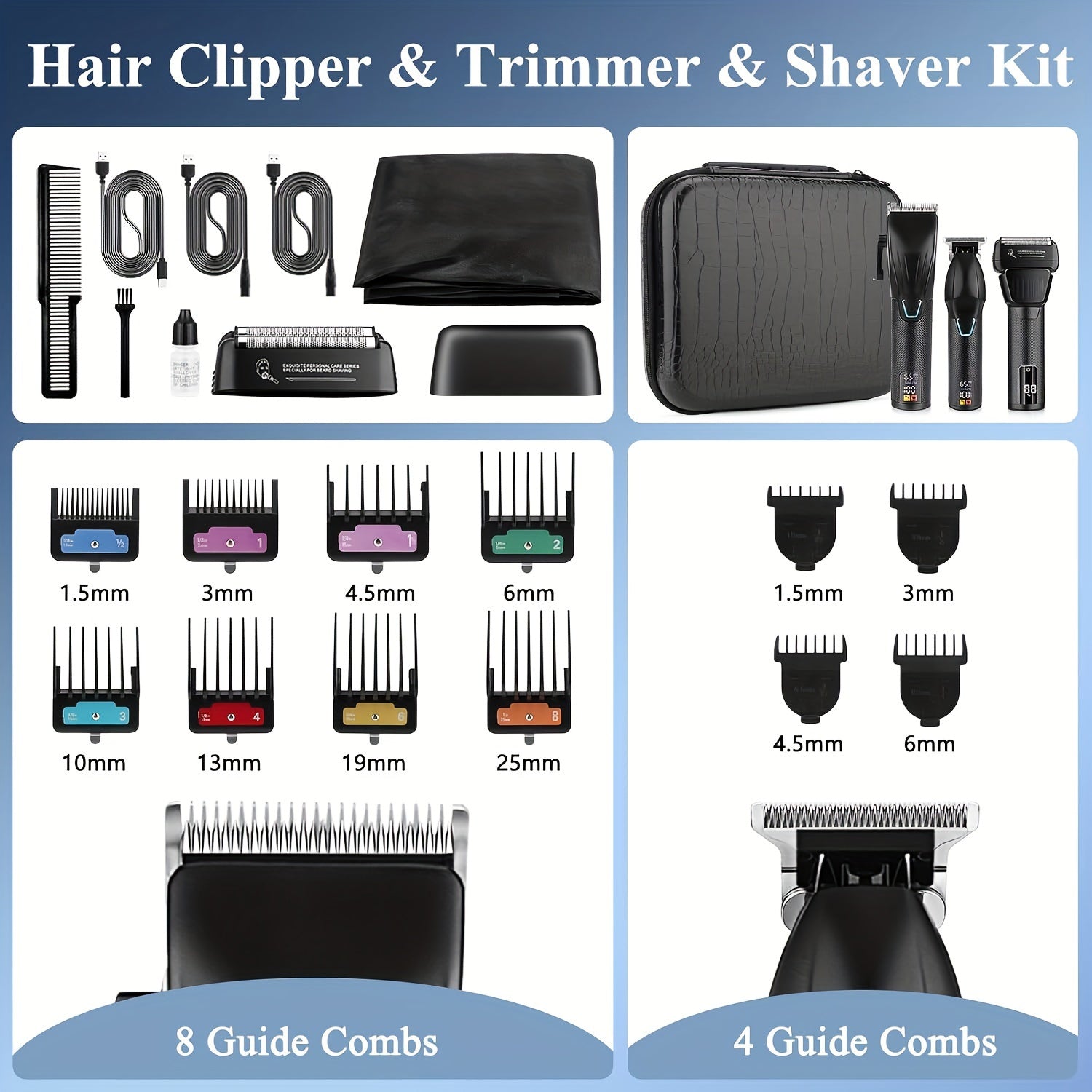- Multiple Attachments: The set includes a variety of comb attachments, enabling you to customize your hairstyle from short fades to longer styles effortlessly.